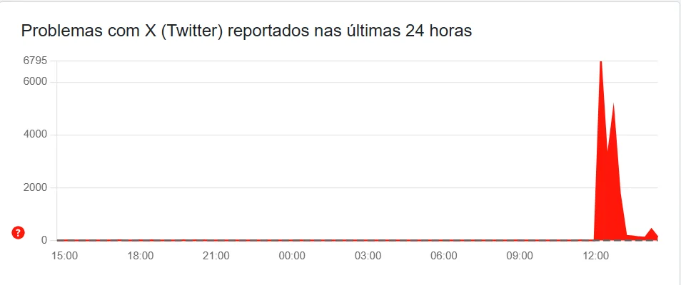 No Brasil, o pico chegou a mais de 6 mil notificações por volta das 12h20. Nos Estados Unidos, o volume foi bem maior, com mais de 68 mil registros no mesmo período.